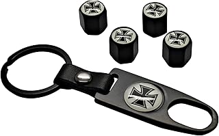 LED-Mafia 4 Ventilkappen + Schlüsselanhänger - Eiserne Kreuz in Chrom - Ventil Anhänger Schlüsselring Etui Schlüssel