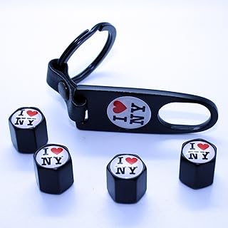 4 Ventilkappen + Schlüsselanhänger - I love NY black - Ventil new york Anhänger Schlüsselring Etui Schlüssel