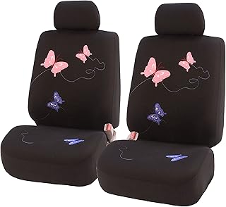 FH GROUP FB055BLACK102 Vordersitzbezüge, universelle Passform für Autos, LKWs und SUVs, Schwarz mit Schmetterlings-Stickerei