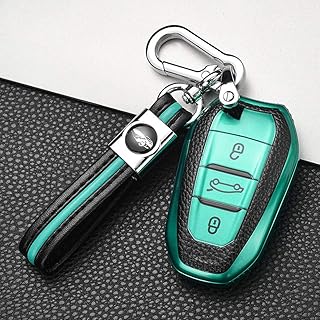 ontto Autoschlüssel Hülle für Peugeot 308 408 508 2008 3008 4008 5008 Citroen C4 C4L C6 C3-XR Fernbedienung Cover TPU Leder Schlüsselhülle Schlüsselanhänger Schlüssel Schutz Etui 3 Tasten- Grün