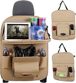 VAIPI Multifunktions-Auto-Rücksitz-Organizer mit Faltbarer Tischablage und Tissue-Box, PU-Leder-Auto-Rücksitz-Organizer mit Protector Kick Mats für Kinder-Roadtrip