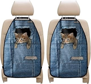 HUGS IDEA Ripped Jeans Cat 2 Pack Auto Rücksitz Organizer Multi Taschen Aufbewahrungstasche mit verstecktem Touchscreen Handyhalter Anti-Kick Rücksitz Abdeckung Aufbewahrung Hängetasche 72,5 x 49 cm