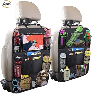 Avril Tian Auto-Rücksitz-Organizer, Kick-Matten, Auto-Rücksitz-Schutz mit Tablet-Halterung + 9 Aufbewahrungstaschen für Spielzeug, Bücher, Flaschen, Getränke, Kinder-Reisen, 2 Stück (2)