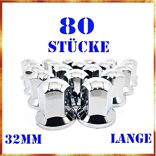 Promo Link 80x 32 mm Radmutterkappen Chrom Schrauben Kappen Kunststoff SW32 LKW Anhänger Auflieger