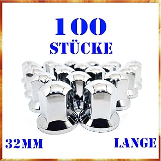 Unbekannt 100 Stück x 32mm Kunststoff Radmuttern Kappen Chrom Schrauben Abdeckungen Deko LKW