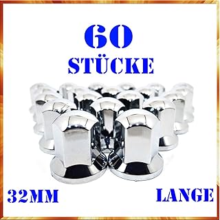 Promo Link 60x 32 mm Radmutterkappen Chrom Schrauben Kappen Kunststoff SW32 LKW Anhänger Auflieger