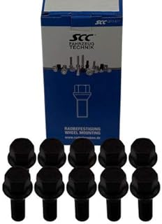 SCC Fahrzeugtechnik 10x Radschrauben M14x1,5 Kugelbund R12 SW 17 Radbolzen Schwarz verzinkt Längenauswahl Größe 35 mm