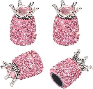 SAVORI Reifen-Staubkappen, 4 Stück, Strass-Bling-Reifen-Ventilkappen, Universal-Reifenkappen für Auto, Motorrad, Fahrrad (Krone Pink)